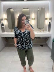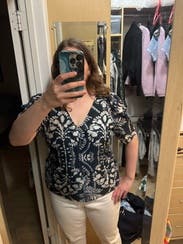 I enjoyed the colors on this blouse. You can probably size down on this one. Comfy and versatile top that is good for work or casual wear.
