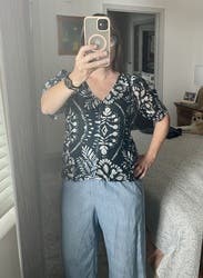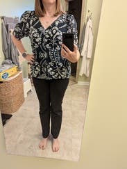 This top was nice and very high-quality. I didn't really love the pattern on me and it made me feel a bit matronly. It worked well for the office though.