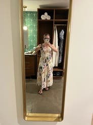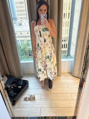 Loved this dress - but it was gaping in the back (I have a small bust) and I had to get creative with cris crossing the straps in the back. Also wish it had pockets. Would def size down!