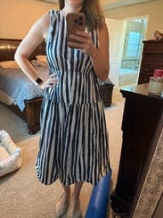 I wasn't expecting to love this one quite this much, but it fit so well and was surprisingly flattering. The stripes have a sort of watercolor detail that was really pretty and made the piece feel a little more unique. Perfect casual dress - can see myself wearing this on repeat all summer.