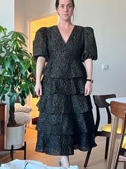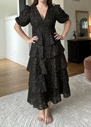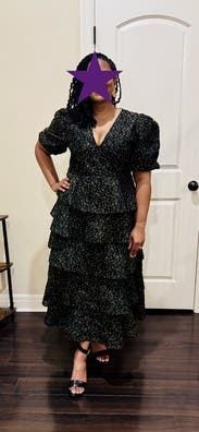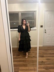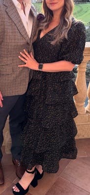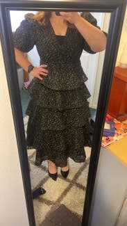 I was obsessed with this dress - I wanted to keep it! I loved the tiered ruffles and loved that I could wear a normal bra with it. I think it could be dressed up for formal attire, but I wore it for a cocktail attire rehearsal dinner. I ordered both the 10 and 12 and ended up wearing the 12 because the 10 was too tight on my bust. I’m 5’4 and was 155lbs and a DD when I wore this for reference.