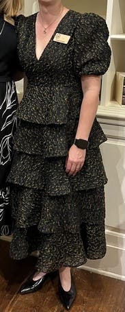I wore this dress for my 40th bday dinner and it felt luxe, special and festive. It is very substantial fabric (high quality but thick) and so make sure your venue is cool! Other than that, I recommend without reservations.