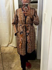My husband kept calling it my bathrobe. The fabric was nice for fall transitional weather and it is beautifully made. A bit hard to keep closed and maybe fun to wear once or twice but wouldn't buy it or rent again.