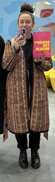 I’m glad I sized down. It does give bathrobe vibes, but I loved the big pockets for traveling.
