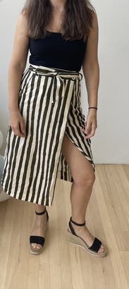 Cute skirt that fits true to size. You have to be careful about winds and crossing your legs - the wrap skirt makes it that you can show a lot more leg than you wanted! I wish the belt were a bit longer to be able to tie a bow, but this is perfect for work or a dinner with friends.