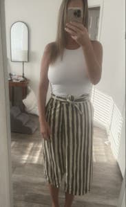 Liked this skirt but the slit is upper thigh so have to be careful when sitting!