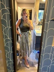 I loved this skirt - the slit is pretty high but it's great for a night out or date night!