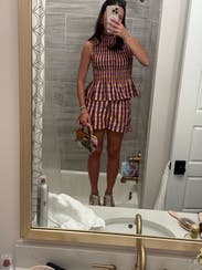 Wore this to a kindergarten graduation and it was fun and comfy, but I still looked stylish! The fit was great, the smocked top is tight but has elastic so it's still movable and breathable.
