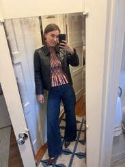 Love a fun top to pair with jeans and this fit the bill! Sometimes crunchy tops can be too clingy or suffocating, but I feel that this one was just right. I’m between a small and medium and went for the medium for that reason.