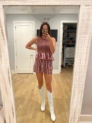 Cute cute cute. A little tight and uncomfortable around the neck but worth it, and flattering. I would recommend and I didn’t even have the matching shorts. I wore these with mother corduroy (on RTR) and they were so cute together.