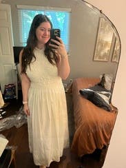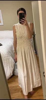 This is a gorgeous dress, feels super luxe and elevated! Stunning fabric, wore with boots and a blazer in the winter but excited to rent in warmer weather. Probably could have sized down but the M was comfortable