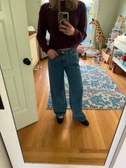 Fabric was very soft and cozy (expected an itchy wool) and sleeves were the just right length for me. The neck/collar felt a little high and the cut of the sweater a little cropped, even with high in-seam jeans. Would have like the neckline to be a bit broader to feel more feminine. The boxy fit felt pretty buttoned up. Wearing because it was in my rental, otherwise wouldn't reach for it.