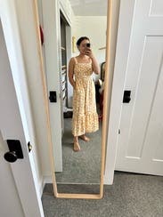 Perfect for a spring bridal shower, cute and comfortable for the small baby bump phase haha. Lightweight so better for warm weather.