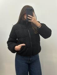 This jacket is totally on-trend right now and actually much warmer and heavier than I expected! It definitely gives 'après ski' vibes. A great feature is the double zipper closure so you can zip it up or down in different ways. The pockets are lined with a cozy fleece, and the main jacket lining is a smooth nylon. It fits true to size. While it hits at a slightly awkward length, you can easily roll the jacket under at the bottom for a perfect, cropped fit.