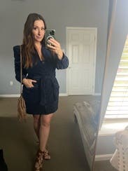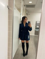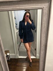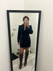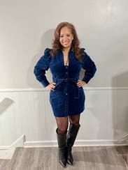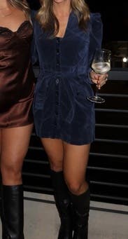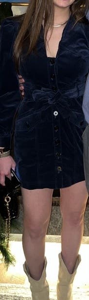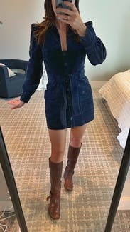 I ordered this dress for date night with my husband and it did not disappoint. It’s definitely low cut, but in the best way: sexy without crossing the line. The blue corduroy was rich and vibrant, but there’s zero stretch, so order true to size. I ordered a 10 and it fit just right-snug but flattering. The belt can make or break the look, so tie it flat unless you want extra poof. The length is short, it barely hit mid-thigh on me and I’m 5’1, but it gave total legs-for-days energy. The moment I walked into the restaurant, the hostess forgot about my reservation and started complimenting my outfit. Enough said.