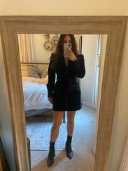 Loved the is dress. Runs pretty short but a very fun dress for fall and winter, super flattering