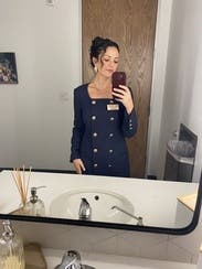I wore this to a daytime work party and got so many compliments! The sleeves were a bit long, but everything else felt tailored and chic. True to size and fit like a glove!