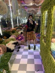 Painterly florals and a rich orange hue add modern romance to the classic silhouette of this unique Marni dress.