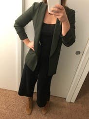 These are basically sweatpants, but they do look pretty polished so I wore them like 4 days straight. They are so comfortable and they go with everything. Very high-waisted, so they work well with cropped sweaters and shirts. They are quite short, a real crop/culotte length so if you are really tall you might find them too short. Fit seemed true to size to me - they are fitted (elastic) in the waist and fairly fitted in the hips and butt, but again they are knit and totally stretchy so the fit is flexible.
