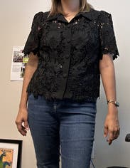 Loved this top! It’s a little bit outside of my lane but I’m so glad I went for it. I wore it for my anniversary dinner and my husband’s first word was “Wow”! The lace is beautiful and the cutouts are such a cool element. It feels like you’re wearing an art piece. If you’re on the fence about whether to rent or not, just go for it! Well worth a rent!