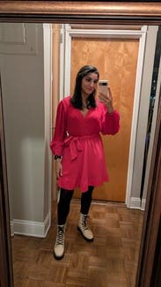 Wore for a valentines event and was the perfect pink. I liked the dress, it was easy to wear and comfortable but the waist line was not the most flattering.
