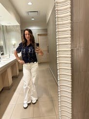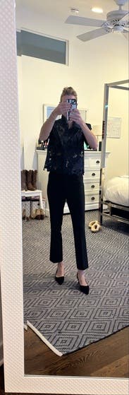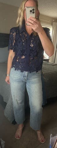 There really isn’t much to say here. It is a perfectly crafted top. Worn to church. I plan to wear it multiple times in multiple other settings. I used chatGPT to figure out my size in the brand since there weren’t any reviews available to me at the time I rented it.