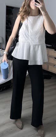 Not the most flattering top, but was perfect for hiding my baby bump at work. The non-pleated material was stiff and boxy.
