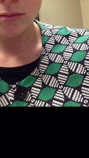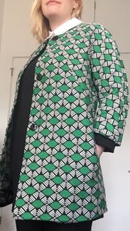 Loved the square shape of the jacket itself and the fabric helped to keep is shape while worn; no unnecessary draping due to limp fabric. It felt very Mad Men with it's block print and simple cut. I enjoyed this piece for work as it was also comfortable to move around while working.