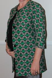 This jacket was made out a nicely weighted fabric with a great bold print. Loved wearing with a black dress.