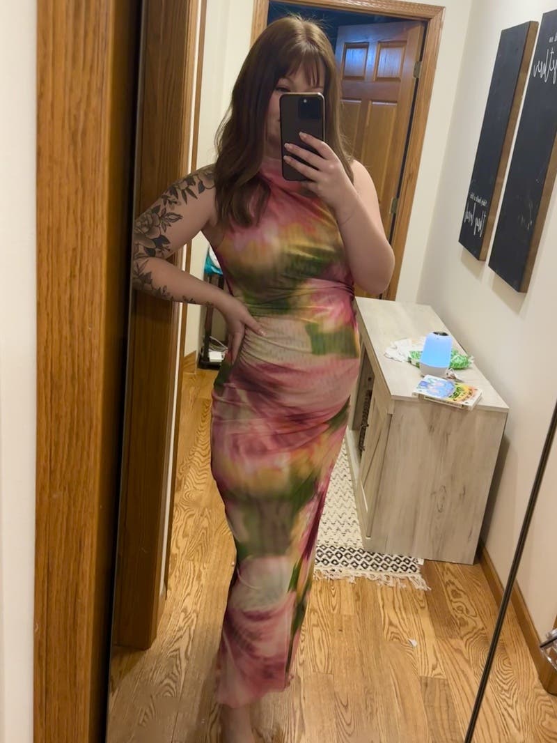 Multicolored abstract (95% Polyester, 5% Spandex). Cocktail Dress. Mock Neck. Sleeveless. Side Button Closure. See fit notes for more information. Made in the USA of imported fabric. Country of origin designation as provided by vendor and/or manufacturer.