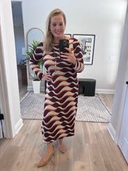 Wish I had taller brown boots for it- but honestly the most comfortable and flattering dress I have ever put on!