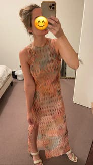 Wore this dress to a festival and got so many compliments. Perfect for some casual fun in the sun or can easily be dressed up. Could be a little see through so you’ve officially been warned. Fits TTS