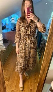 The slit on this is so high it’s hard to wear to work. Colors weren’t super flattering on me, but I do love a misa. Great fall palette but lightweight dress