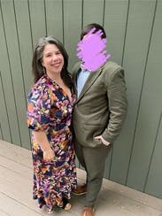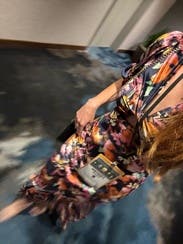 This dress was so comfortable to wear. The material is a thin velvet with a tiny bit of stretch. There’s a little open keyhole where the twist comes together under the chest. I didn’t want to go braless so here’s how I made it work… There’s a little flap of fabric folded inside that area. I just flipped it up and pinned it. You couldn’t see a thing! Loved this dress!
