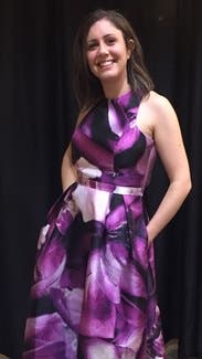 This dress arrived as a replacement, and it was gorgeous in person. Once I put it on, I literally floated down the hallway. The colors and pattern were bold and punchy. I wore the dress to my exhibition's opening reception and dinner, and I received compliments from everyone. With 4-inch heels, the back hem just barely lifted off the floor, so there was no trailing and no tripping on the hem. I was comfortable all night standing, sitting, and walking in this dress. I did not have to wear a bra, especially since the top part was a tad too big for my bust size, but no matter, since the heavier fabric allowed the top to keep its shape even without the bra. I love this dress!