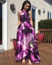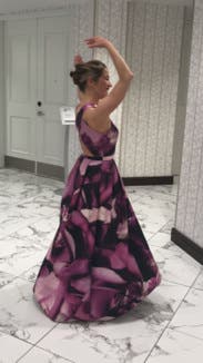 I wore this for my junior prom. Midway through taking photos with other couples I had people come up to me and ask where I got such an incredible dress and that they decided on the spot they were getting if for their next prom/wedding/event PERIOD. The lift in the front was perfect and made dancing effortless. I wore a backless bra from aerie that was supported the whole night by the snug torso of the dress even though the back was very open. One should have absolutely no fear of going braless if they wish to do so, either way works in this dress. The thick material is all there is, there is no padding. The pockets were the icing on the cake, just big enough for my phone without feeling clunky. The zipper was slightly rugged but overall was the main support mechanism of the dress. I ordered the 0R and the 2R. I have a small waist so I wore the 0R but both dresses gave much room for my legs. This dress was in no way restraining. The fabric literally glows in the sun and is super soft. It appears more pinkish on the website but is truly a mix of pink, purple and fuchsia. Originally, I thought this dress was on the louder side but in a sea of LBDs it made my night unforgettable.