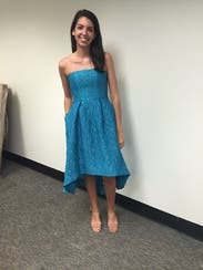 Great fabric and color! The fitted boned bodice keeps dress in place and can be worn with or with out a strapless bra. The high lo cut its nice length on short girls too!