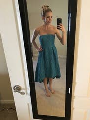 This dress was great and fun to wear to a wedding. My only complaint is that the boning in the bodice came down pretty low on me and poked my stomach when I sat (unless I had perfect posture, which I adopted for the evening!). I think that's partially due to me being shorter and this not being a petite size. Otherwise, I really enjoyed wearing the dress and got lots of compliments on it. The pockets were an added bonus. It was my first time using Rent the Runway and overall it was a great experience.