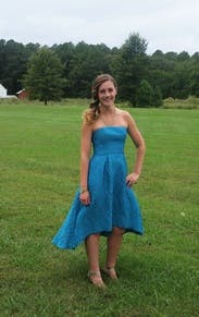 Wore this to a wedding, and it was perfect! The color and high low hem really helped it to stand out. The built in bra was enough for me not to need to wear a bra, which was amazing! Would rent this one again. It had a small tear at the back, but it wasn't enough to keep me from wearing (and loving) it.