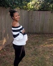 When not pregnant I wear an XS. I just went up a size and at 34 weeks pregnant the top fit perfect. This top was super confortable and the material was light enough to wear in the horrendous 90 degree fall we are having. I got compliments on this top all day. The only con is that the sleeves are hard to keep down especially when driving. I found myself pulling them off my shoulder all day, but it was totally worth it for a cute maternity top.