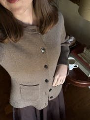It’s great, heavy thick flat knit that looks like rich mom clothes, this size medium barely fit my size 8/10 torso. I have it open in the picture but I also wore it buttoned, and it was a very slim fit!
