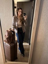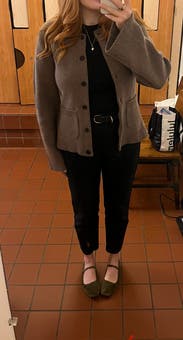 Great snatched fit if you have an hourglass shape, wore over a dress, to the office, on a date - super versatile and don’t want to give it up yet!! Perfect for fall