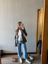 The sleeves of this sweater are really long so I gad to fold them but regardless, its a super cute sweater