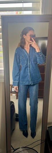 Loved the shape of this jacket and felt it really elevated a denim jacket look. I wore it mostly to work, it was easy to transition into the evening if any after-work plans. It did run a bit tight at my waist so would potentially size up if rented again.