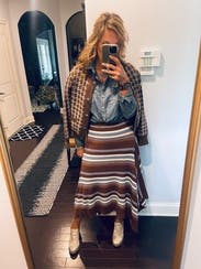 I recently wore this skirt to a girls' holiday lunch, and it was such a super cute choice! The skirt looked fabulous on its own, but I decided to pair it with the matching top for a coordinated look and received so many compliments throughout the day. As another review mentions, the waistband of the skirt is very snug so keep that in mind. I may size up in the future. Overall a great quality skirt and set!