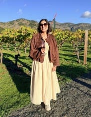 This dress was perfect to throw on for our trip to Napa. It looked great with a jacket over and the flow of the skirt was perfect. It did run a tad large on top, I wish I had a belt to secure it better.
