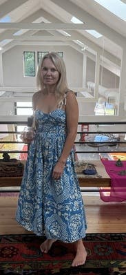 Beautiful flowy dress with a great silhouette. 4 stars because the straps were very tough to tie and adjust and there isn’t pockets!
