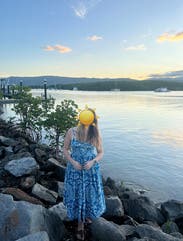 This dress was beautiful — the bold blue print really stands out, and the flowy style was so comfortable and flattering. The only thing I didn’t love was the way the straps tied. Still, it was such a fun and breezy dress for a summer event, and I’d rent it again!