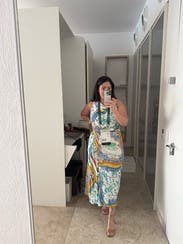 perfect—flattering yet comfortable. It’s incredibly versatile, easily dressed down with sandals for a chic daytime look or elevated with heels for date night. The fabric and print felt high-quality and unique, and I received so many compliments. Highly recommend for any occasion!”