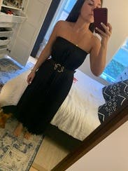 It was so cute with a belt! Didn't end up wearing it but was comfy and stayed up even tho it was strapless